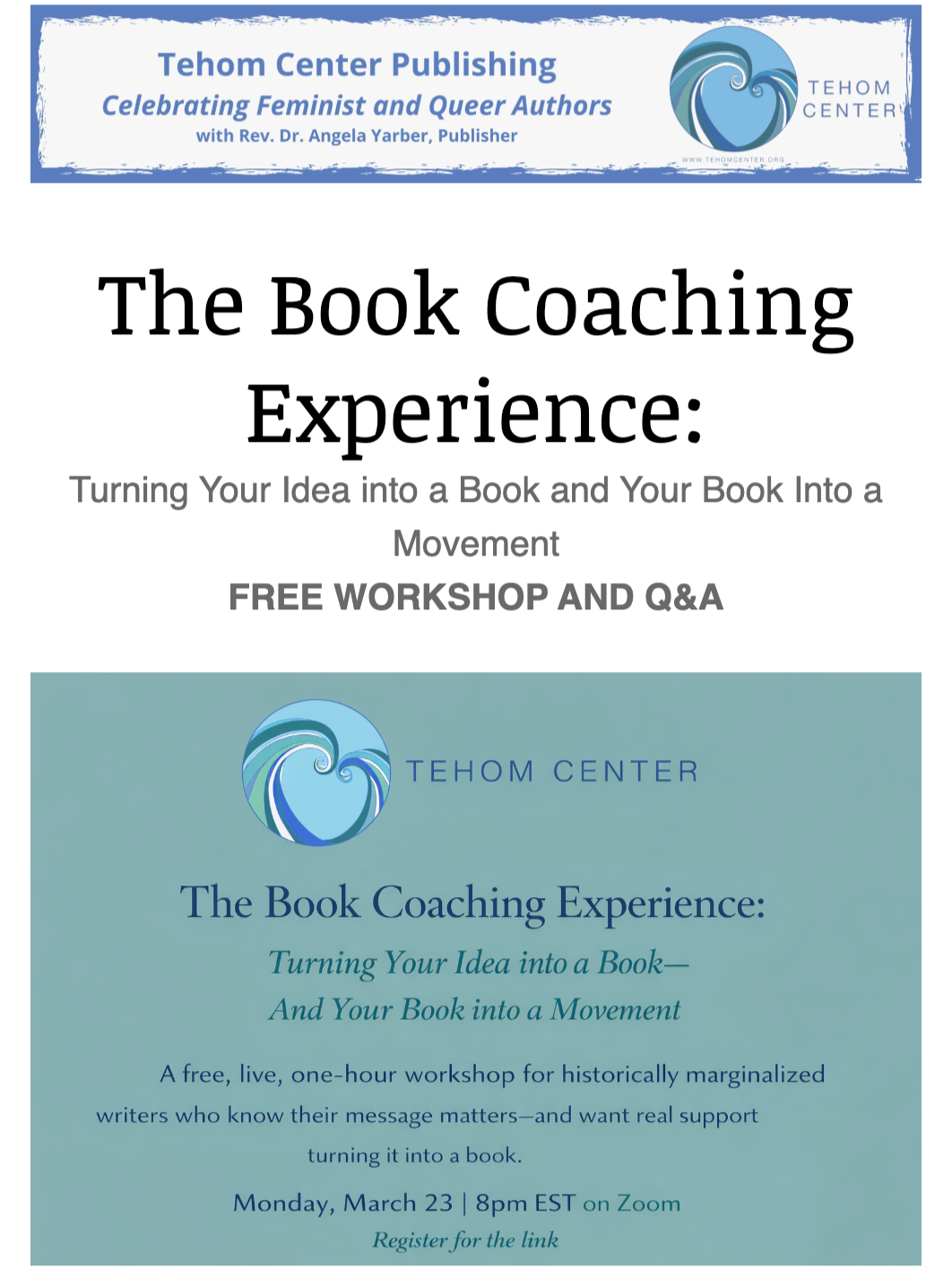 Bonus - Book Coaching Workshop: Join me and Tehom Center Publishing on Monday, March 23rd for a free webinar about their one-on-one coaching offerings!